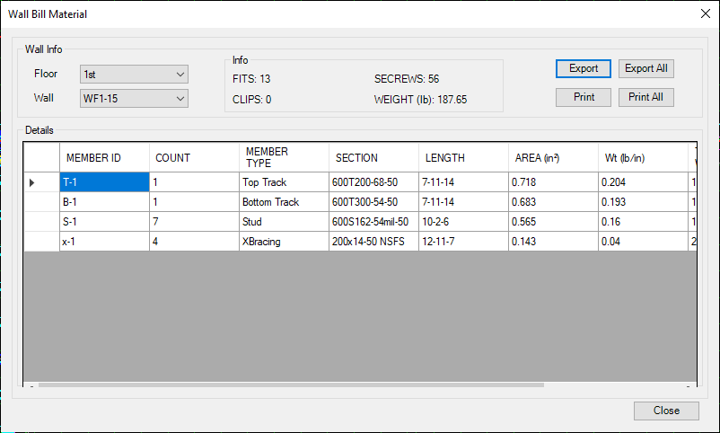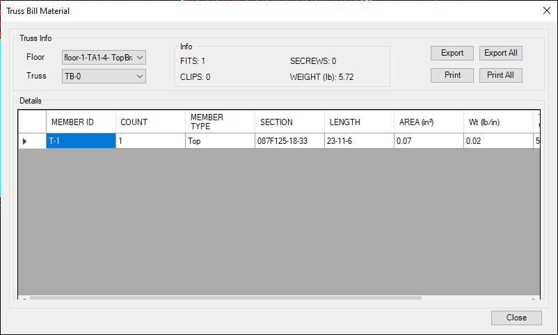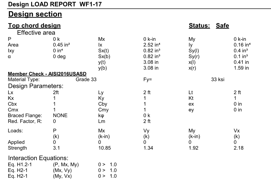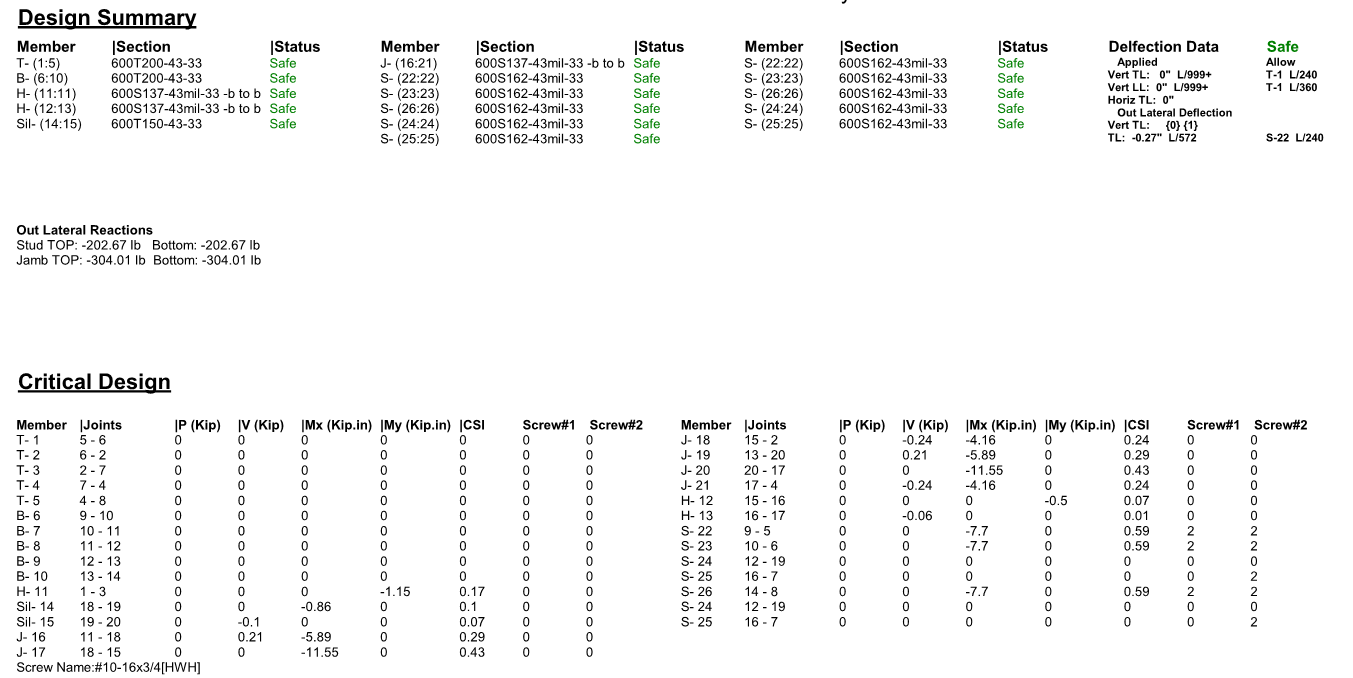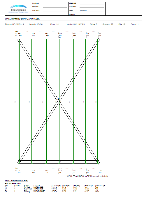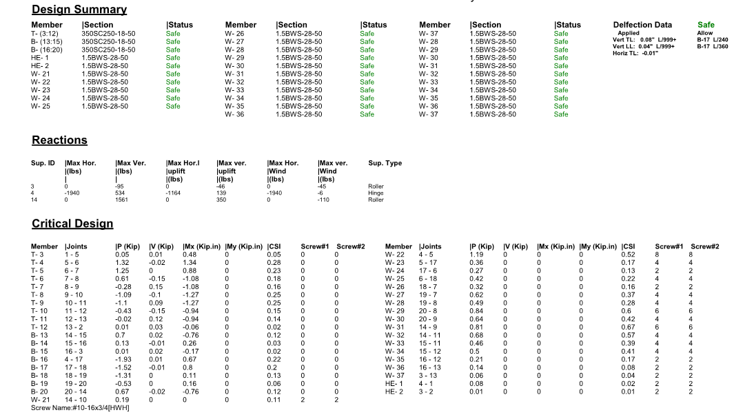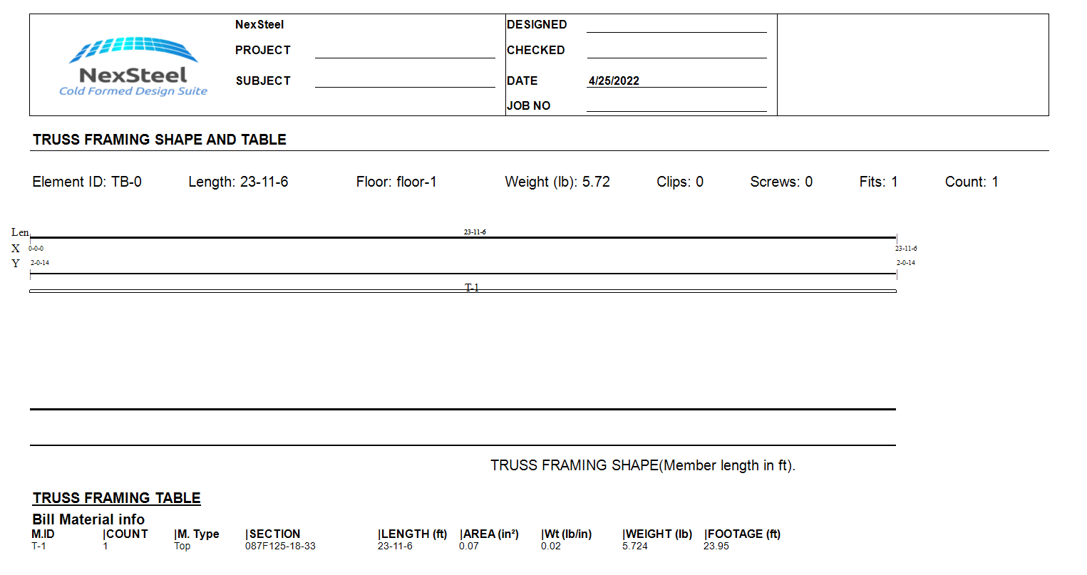 Users can print report after they run (F5) them design. The following is samples of truss and wall report.