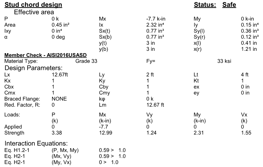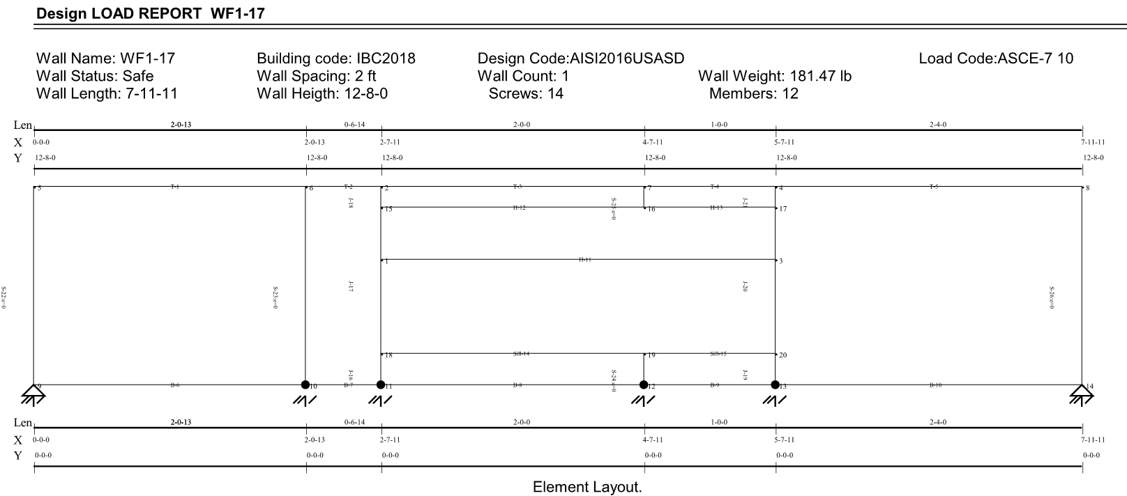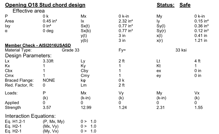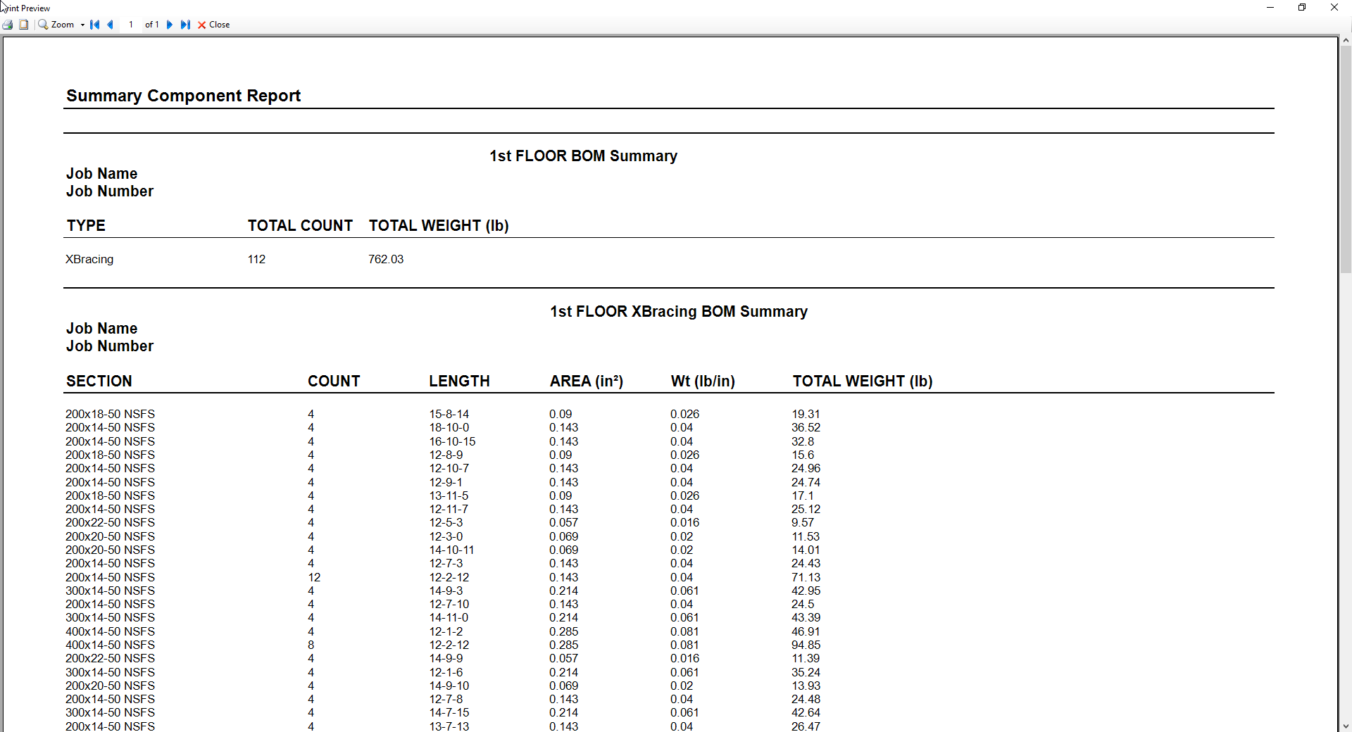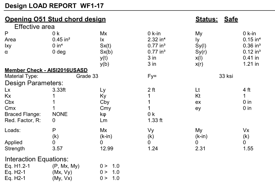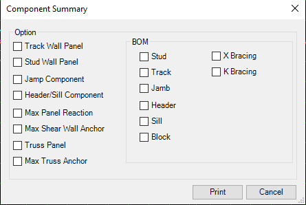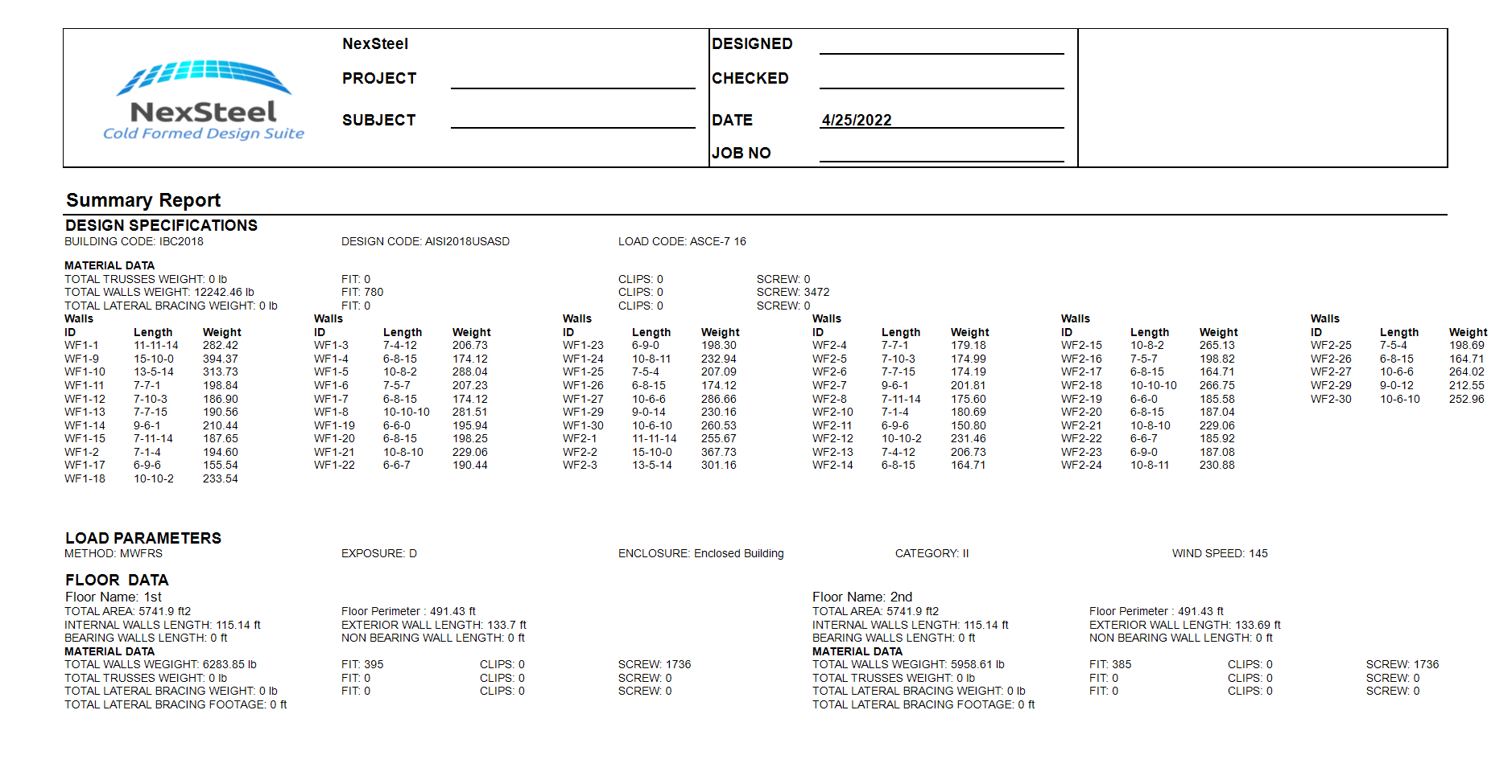 Users can print report after they run (F5) them design. The following is samples of truss and wall report.