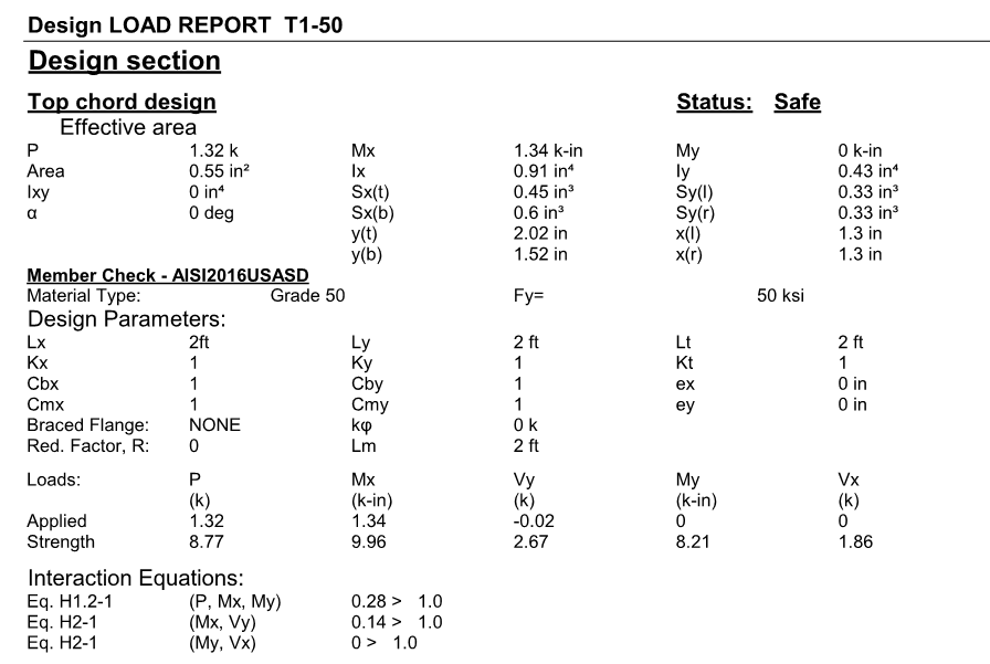 Sample Truss Report