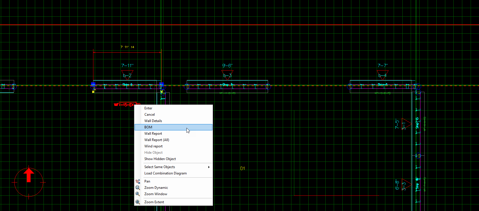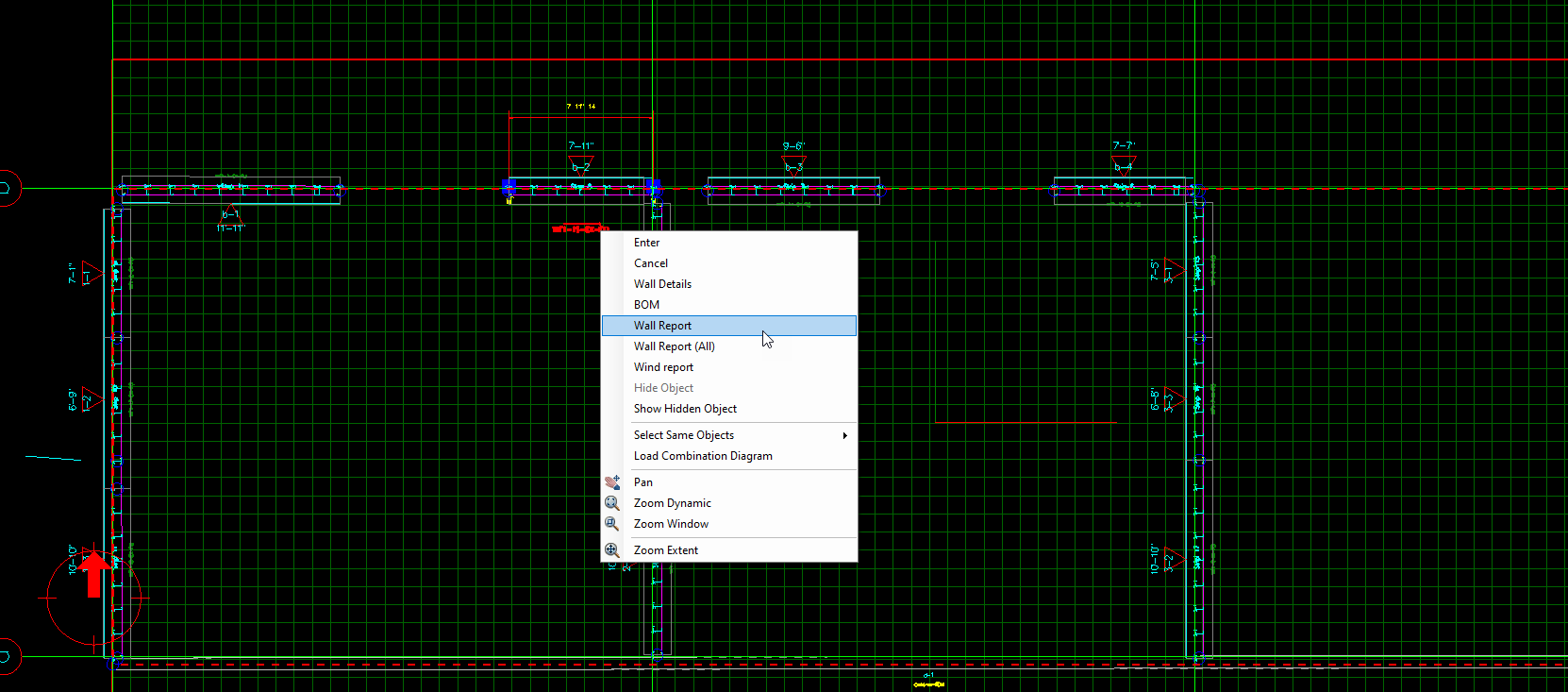 Users can print wall report by following next fig. By selection the wall and then right click on it and select wall report, then select what you want include in report as in fig