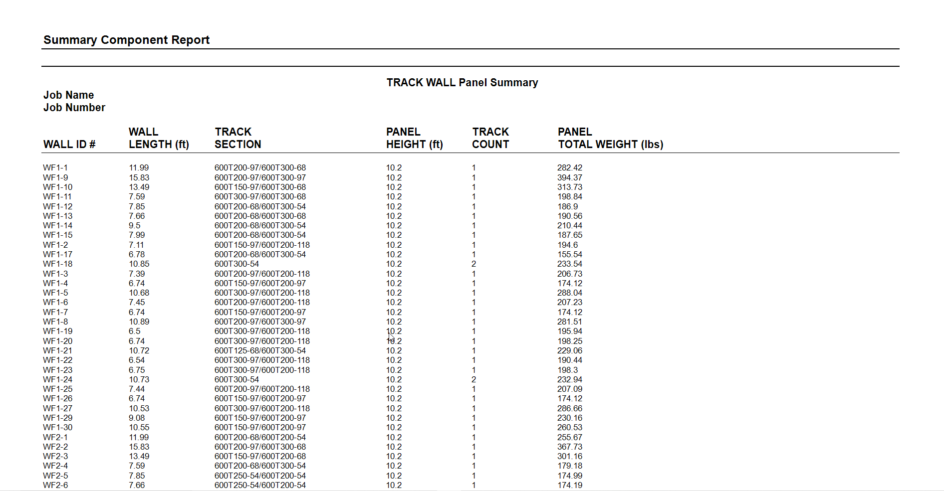 Component Summary for Track Wall Panel