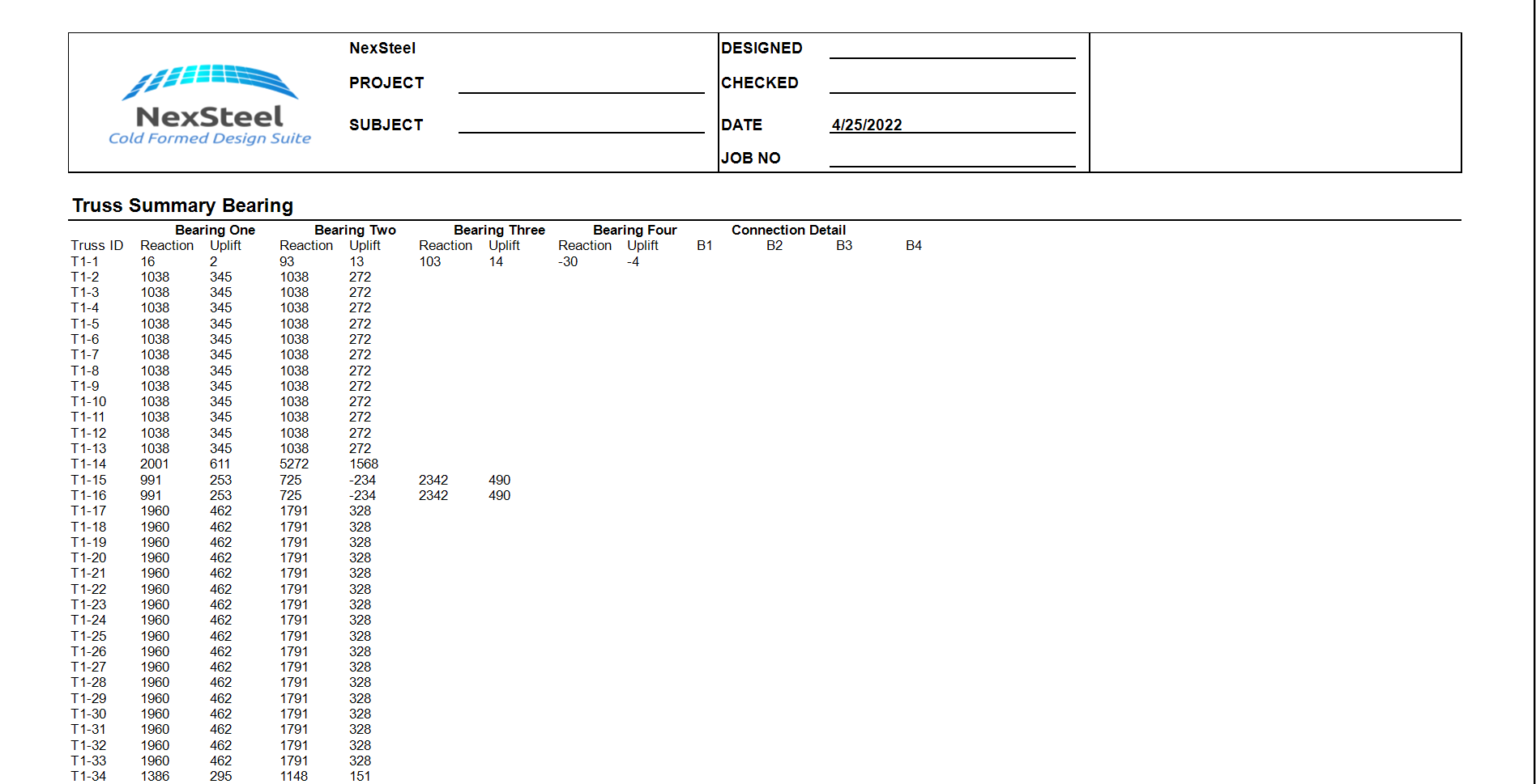 Truss Summary Bearing Report - Sample