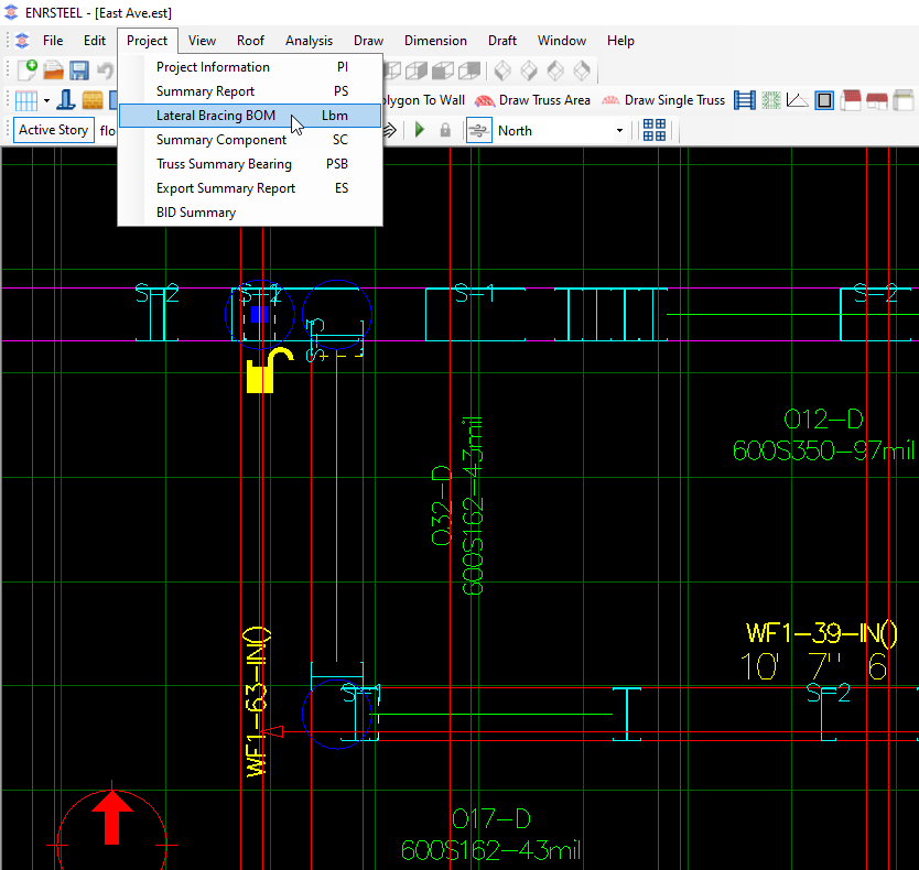 Users can reach Lateral Bearing BOM report from menu bar Project section or by shortcut (LBM)