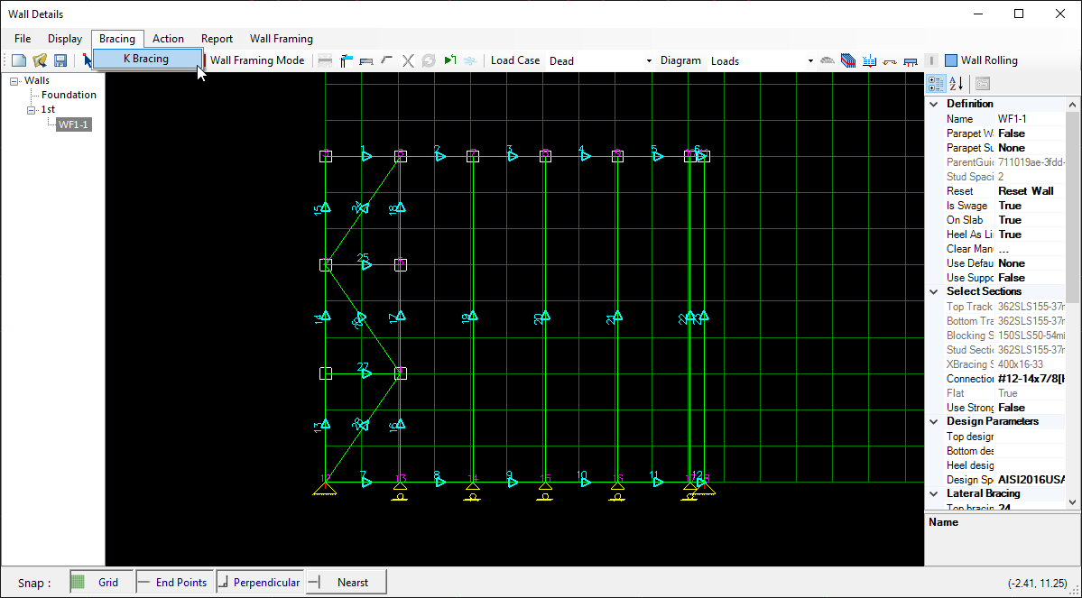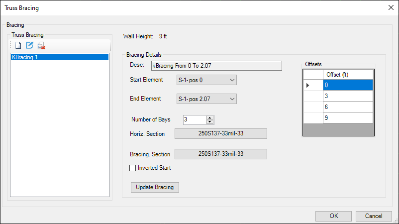 As shown in fig32 we can generate K-bracing walls from wall details window as well as we can choose the sections and number of bays – diagonal webs- and we can select the offset between the horizontal bars.