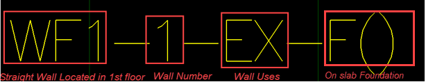 Users can choose the function of wall if it will be Exterior (EX) or Interior (IN). That is matter for load distribution when if effect to wall and we can see that clearly when we print the report and look at loads part. Each wall has specific name as the following: