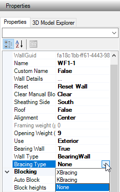 For Wall Properties users can select Wall type fig 33, Bracing type fig 34, add Blocking at specific height if needed fig 35 and select the deflection limits as shown in fig 36.