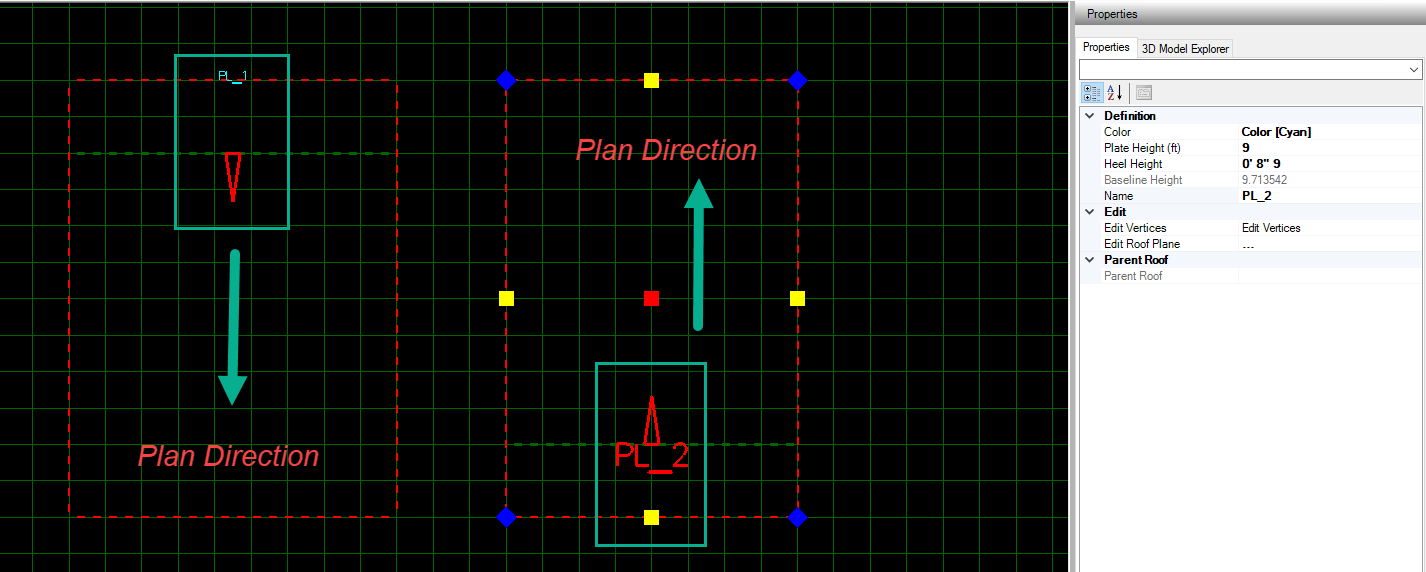 When selecting to add a roof plane, user will be promoted to select first alignment point, then second alignment point. The third click will be used to position plane direction and boundary.