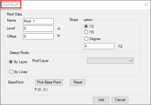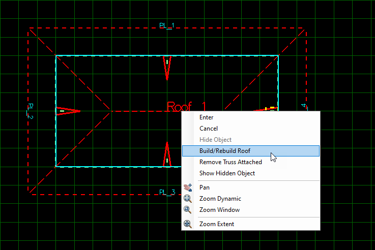 This option will generate roof from a polygon as roof boundary. The user can select an existing polygon object or an object that has a polygon around it. This option can be very effective in drawing roof quickly from existing objects. Capture below shows example of roof generated inside a simple drafting polygon.