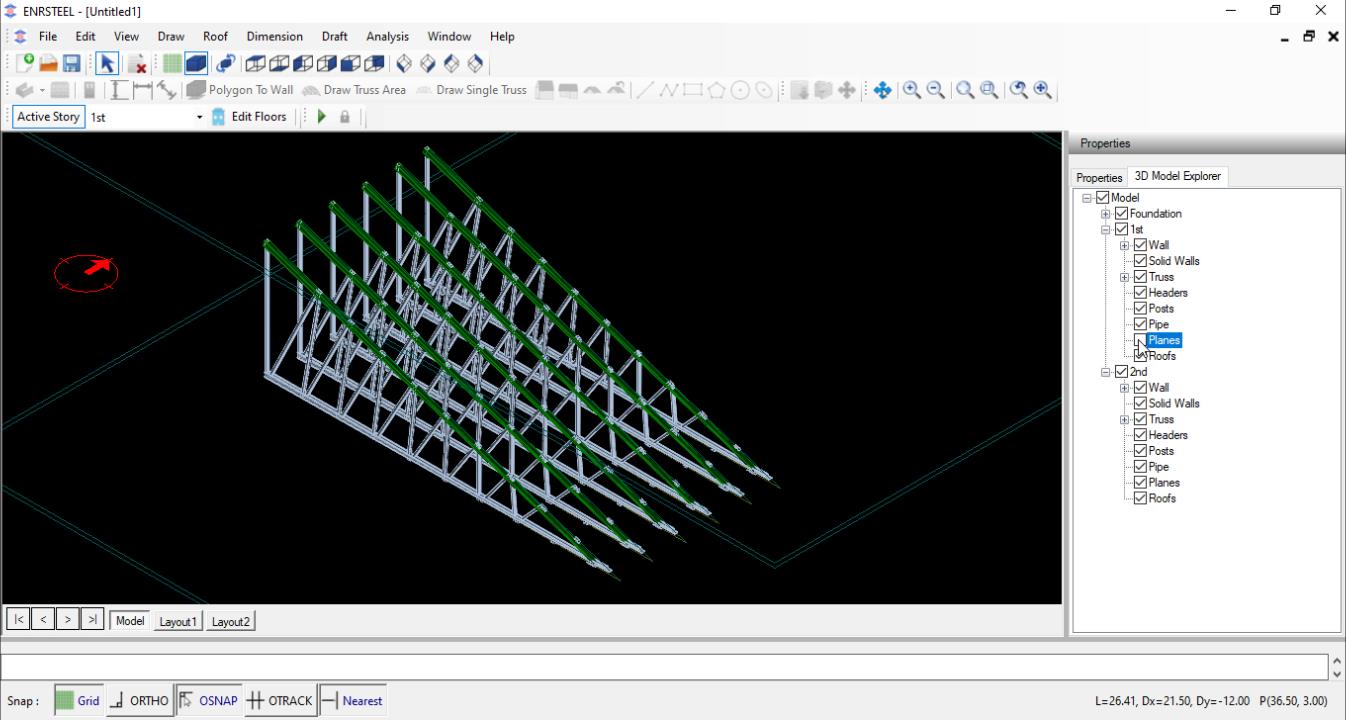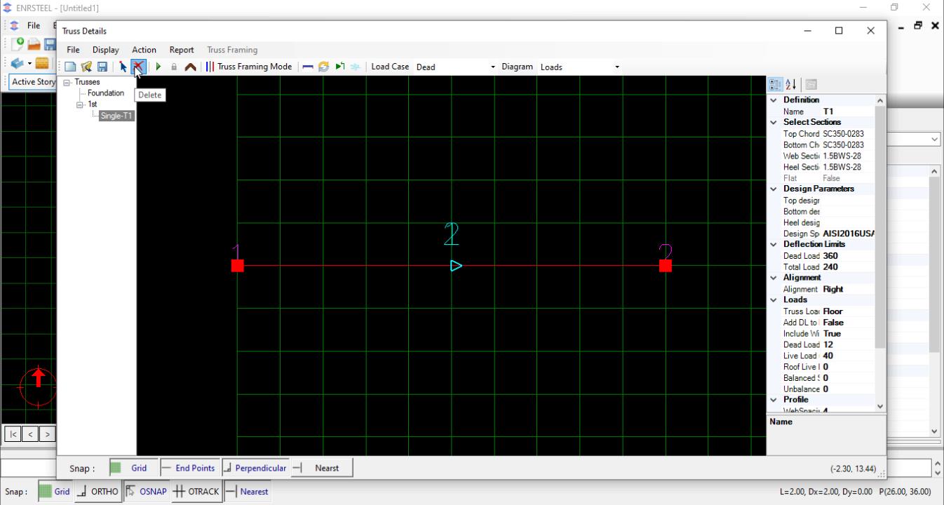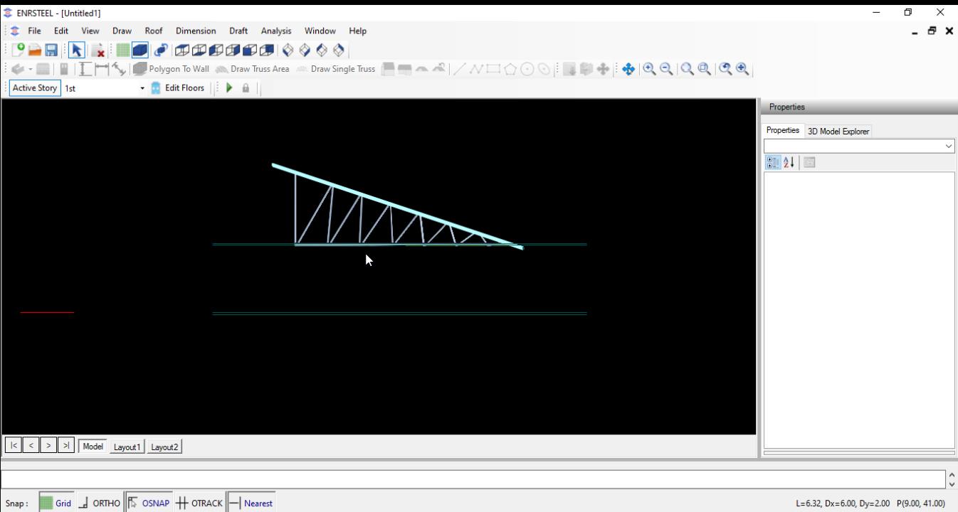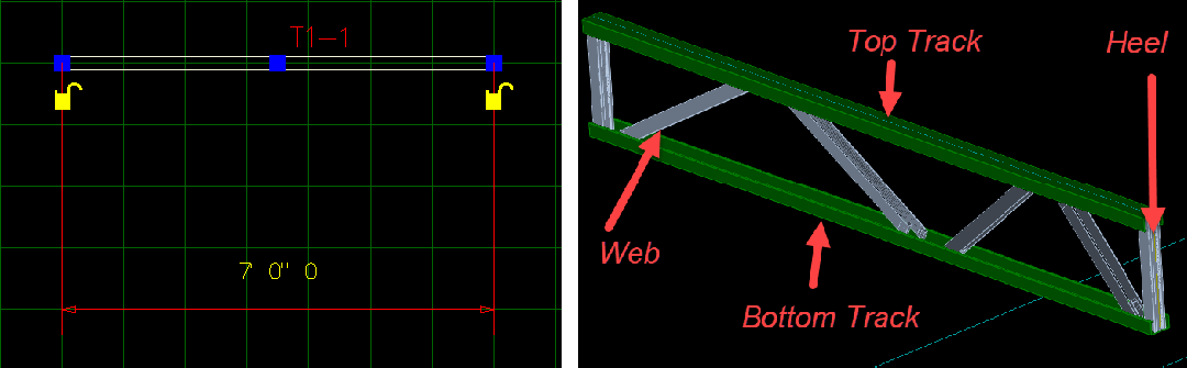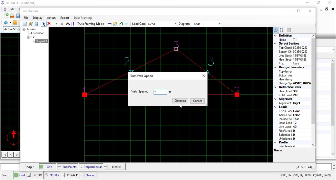 The below figures show the Single Truss in 2D & 3D with truss components.