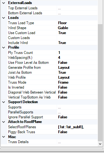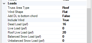 For Loads sections in Truss Area Type we can select on of Roof, Floor, Ceiling and wind shape we can select Hip, Flat, Mono Slope, Gable and None.