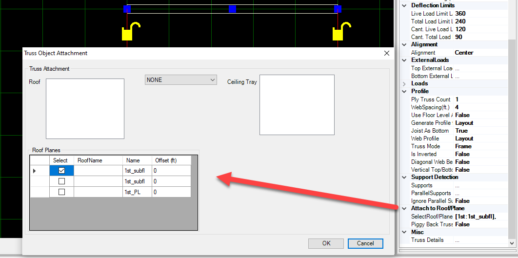 Select truss and click “Attached to roof/ plane” and attached to “PL” plane