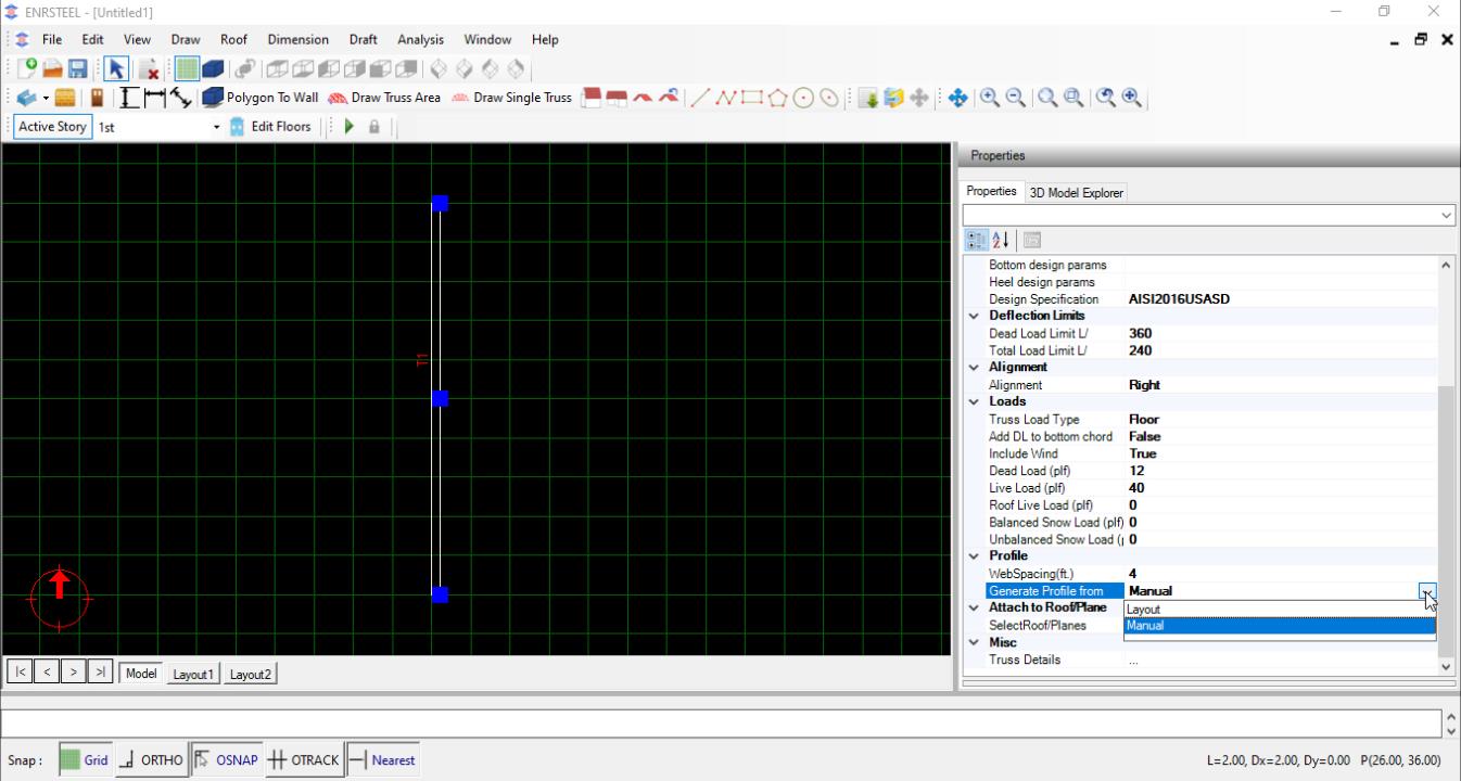 Users can modify/create the envelope of any truss of truss area or single truss by changing generate profile property to “Manual”. Open truss details to complete the envelope of truss. See steps: