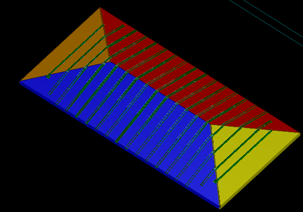 Fill a certain area with trusses. The user can select an existing polygon or draw polygon/rectangle to use it as boundary of truss area. The trusses have been automatically generating according to truss spacing and each truss has a label.