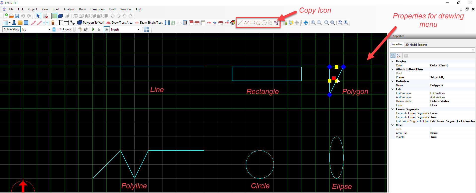 Note: To draw any element in ENRSTEEL there is 3 ways:
