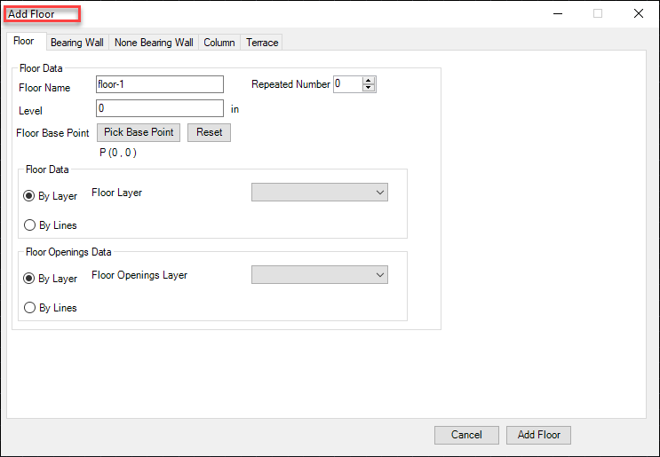 The Add Opening option under Walls menu or the Toolbar icon. Add opening toolbar can be used to create new wall openings. User will be promoted to click at start and end location of the openings along the wall.