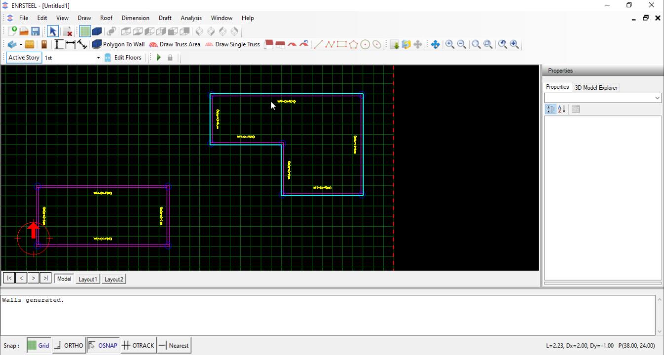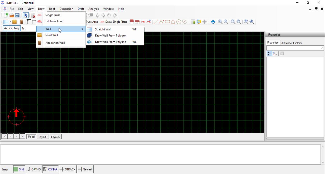 ENRSTEEL gives users the availability to draw and design 4 types of walls as the following: